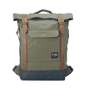 2か所のボタンで留める上部をロールして締める薄型のバックパックです。 ロールした部分には補強されたハンドルがつき、背負うことと手持ちすることの両方ができます。 内部には15インチPC(一部機種を除く)を収納するパッド付のポケットと、ファスナー付のポケットがあり、その他の仕切りはありません。 薄型のデザインが特徴のため、詰め込んで膨らませるよりも、PCと書類や冊子を入れる機会の多い方のスマートな移動に向いたバックパックです。 表面は撥水性のある600Dのポリエステルで、モデルごとに異なる独特のカラーが使う人の個性を引き立たせます。