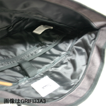 G.ride ショルダーバッグ。 本体を折り返して、マウンテンロープに取り付けられた2か所のフロントタックでフラップを留めます。 このフラップ裏にはファスナー付の大きめの外部ポケットがあり、背面下部にはパスケースや名刺入れが収まる程のオープンポケットがあります。 ファスナー付の大きな開口部を開けると、PC収納に適したパッド付の大型の仕切りと、ファスナー付のポケットがあります。 また内部へのイージーアクセス用のファスナーが右外側に取り付けられ、太めのショルダーベルトの調整は、旅客機のシートベルトをイメージしたデザインになっています。 上部には下げ持ち用のキャリングハンドルがつきます。