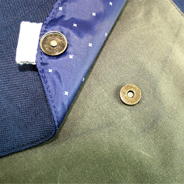 生地の風合いはコットン風のポリエステルとの混紡で、充分な撥水性があります。